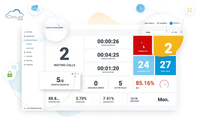 Discover up-to-the-minute call center metrics and key performance indicators (KPIs) from the central call center Wallboard. All data are auto-calculated in real-time, daily, weekly, or monthly interval for your in-depth call center monitoring, management & optimization.